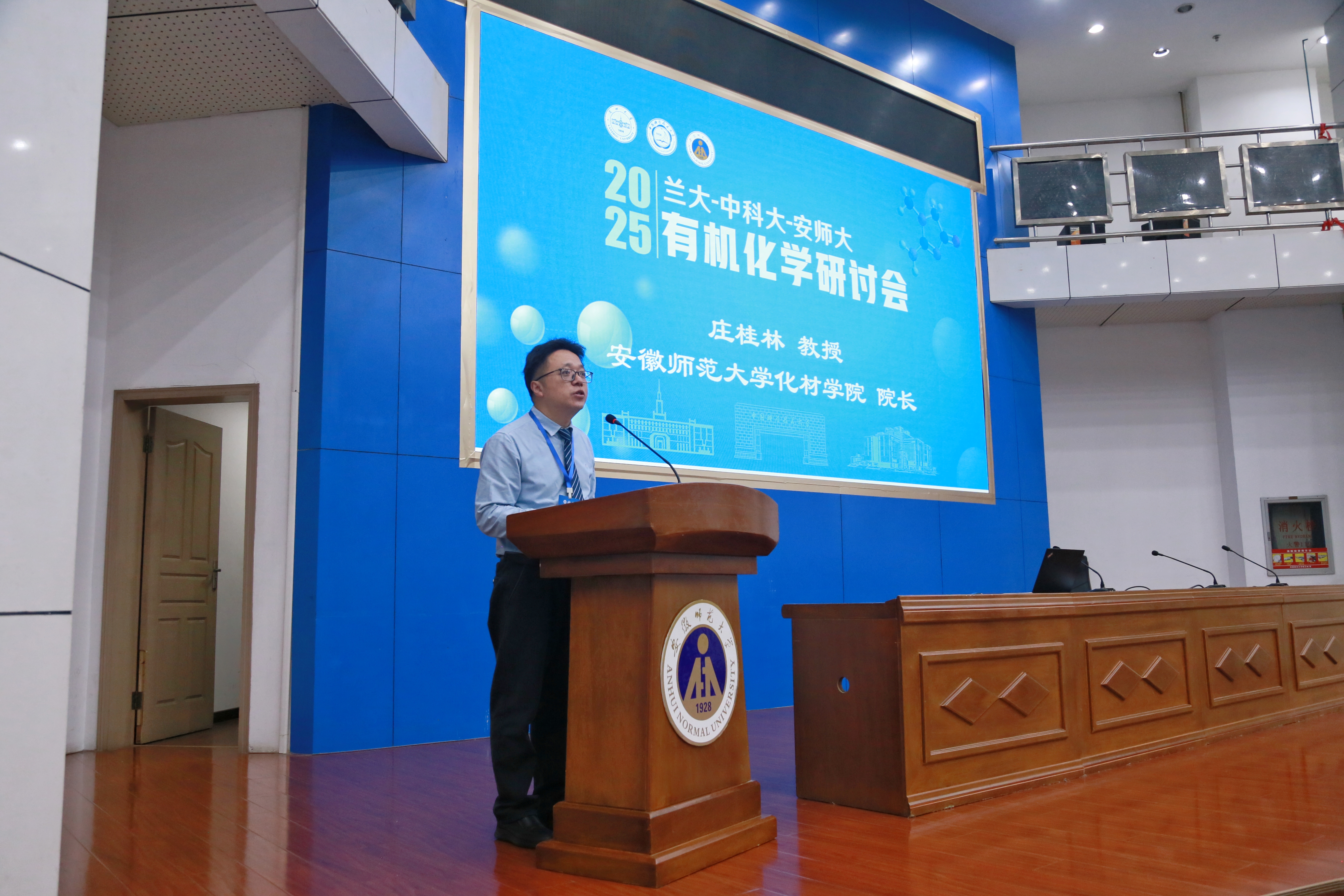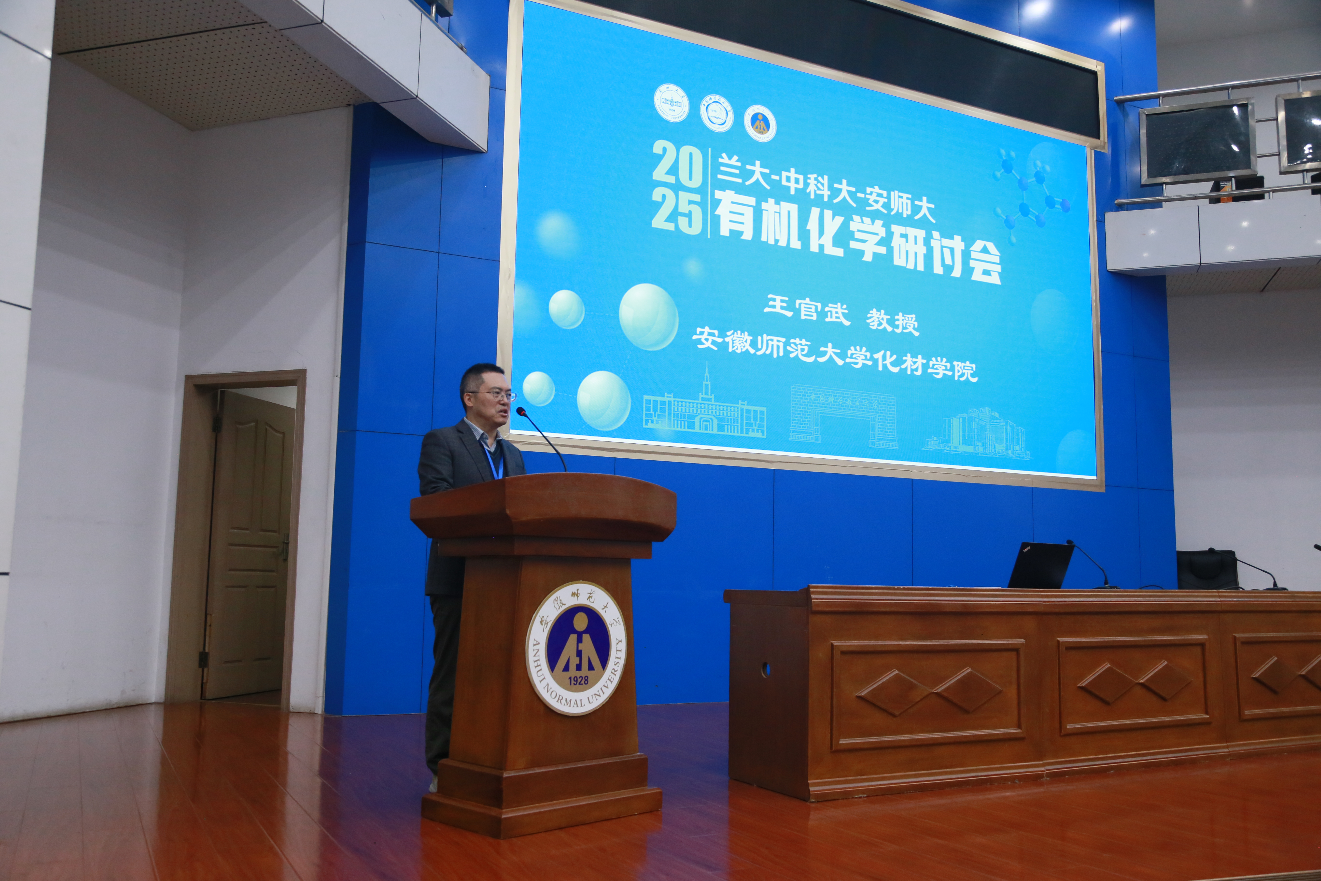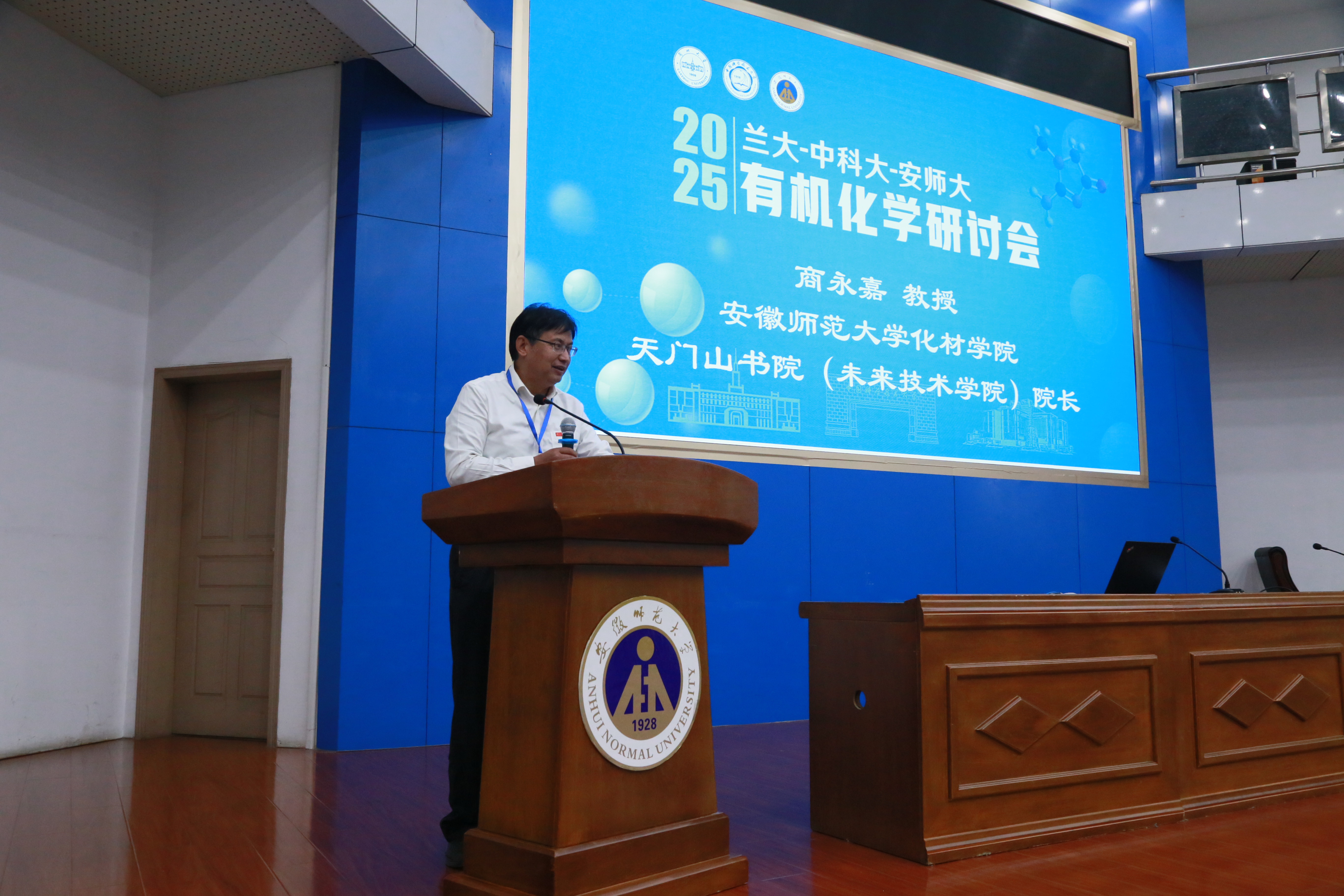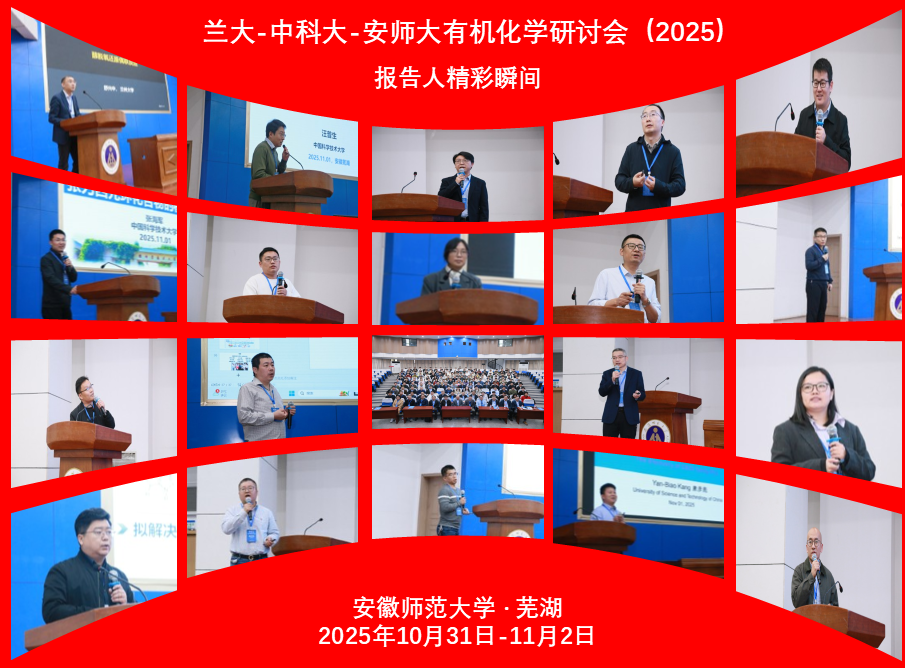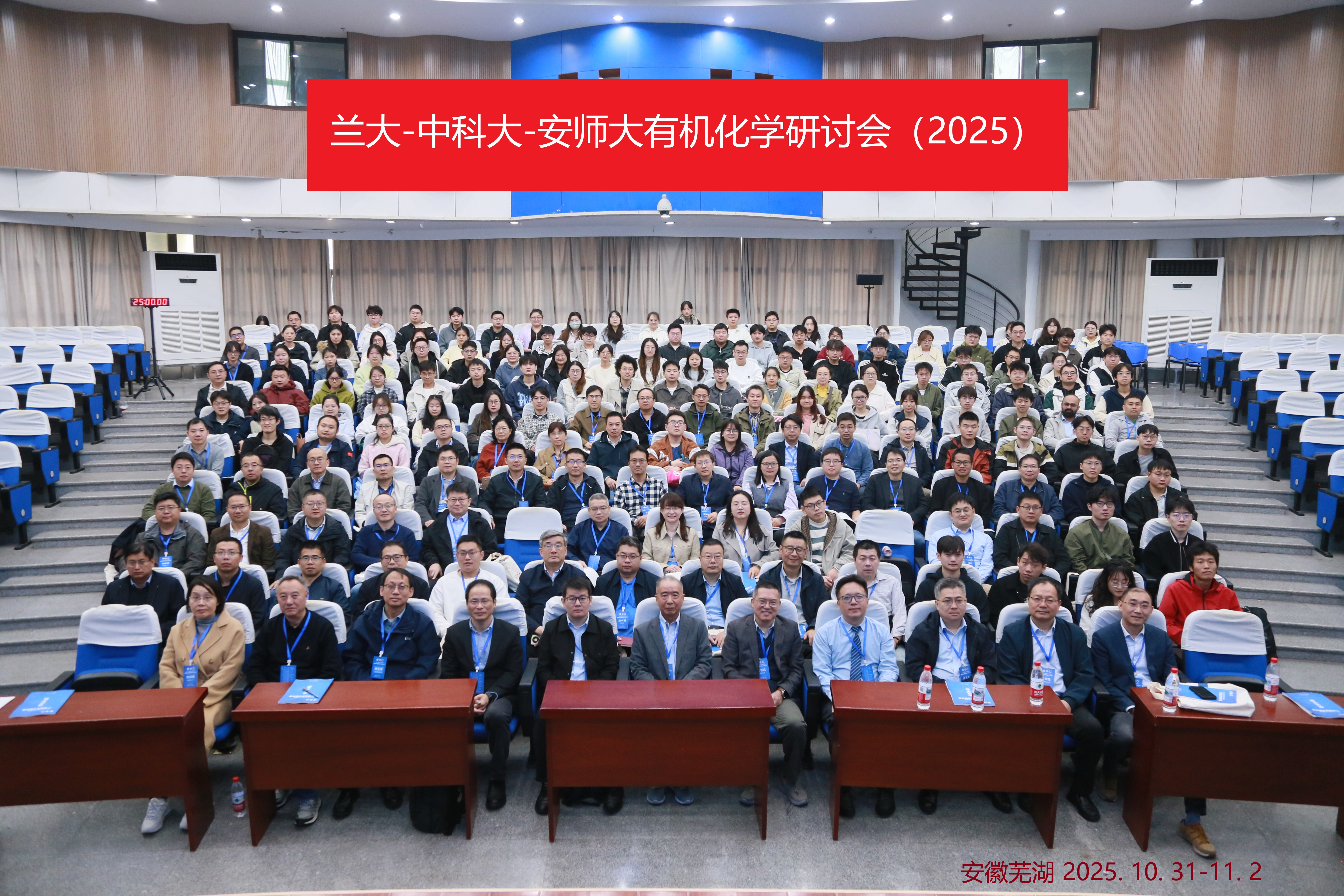 2025年10月31日至11月2日,由安徽师范大学主办,兰州大学和中国科学技术大学参与的“兰大-中科大-安师大有机化学研讨会(2025)”在敬文报告厅举办。来自兰州大学、中国科学技术大学、中国科学院化学研究所、安徽师范大学等高校和科研院所70余位专家学者参加了研讨会。